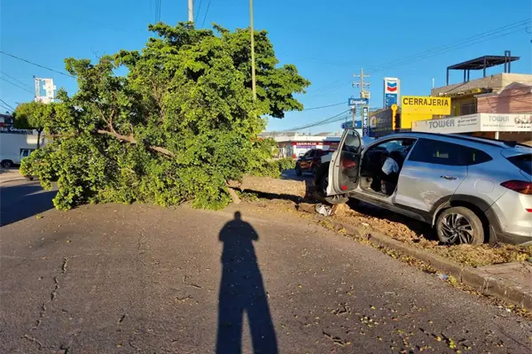 Joven conductor arranca un árbol al chocar en la colonia Miguel Hidalgo en Culiacán