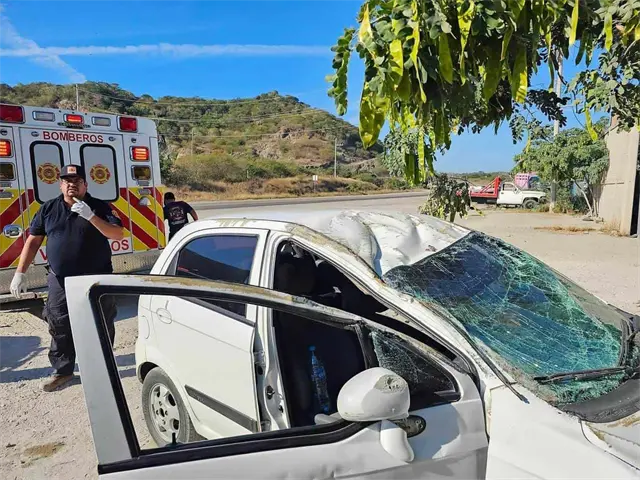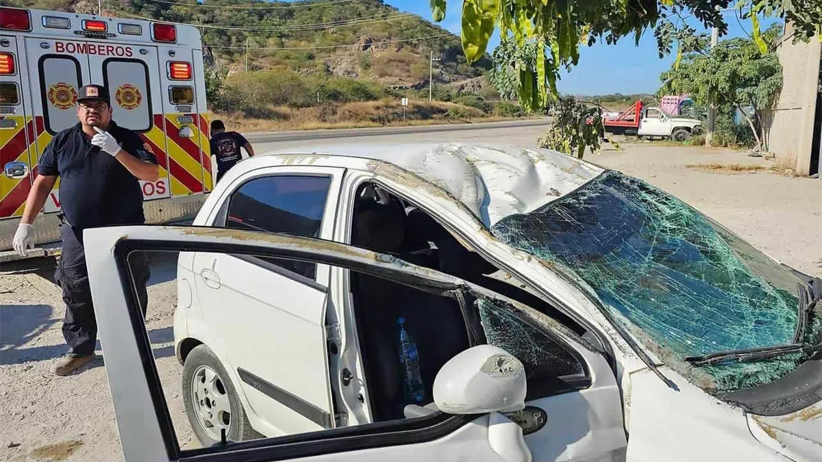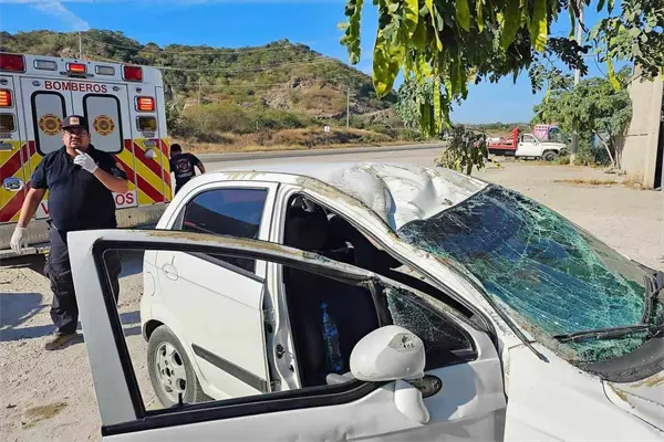 Un par de jóvenes que viajaba en un vehículo Matiz blanco, terminaron volcados presuntamente luego de que su unidad registrara una falla mecánica en la carretera libre Mazatlán-Culiacán.