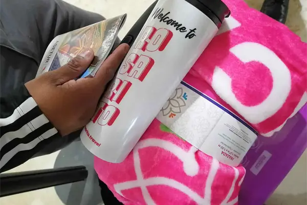 Apapacha Mexicana de Aviación a sus primeros viajeros con frazadas, termos y lonche para el viaje