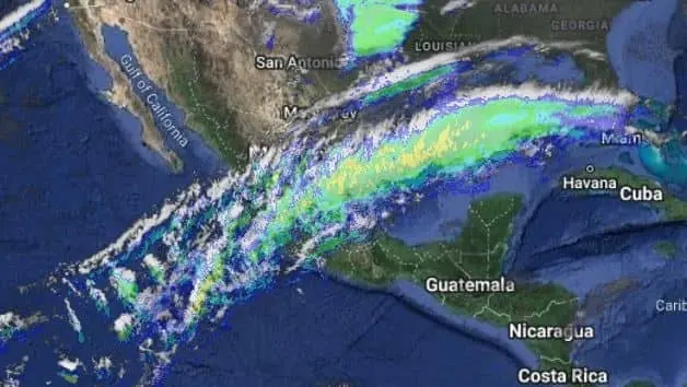 A su vez, la masa de aire frío asociada al frente, generará evento de «Norte» muy fuerte (de corta duración) con rachas de 60 a 80 km/h y oleaje de 1 a 3 metros de altura en las costas de Tamaulipas y Veracruz.