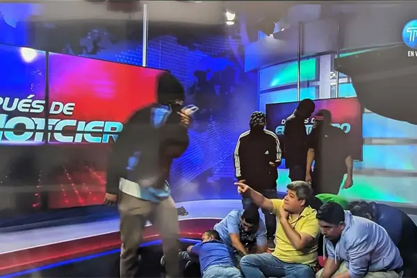 Los trabajadores del canal TC de Ecuador se encontraban ejerciendo su trabajo de manera normal, cuando de repente un grupo de hombres armados irrumpió en el set en plena transmisión, donde los empleados se encuentran secuestrados y amenazados por los presuntos criminales.