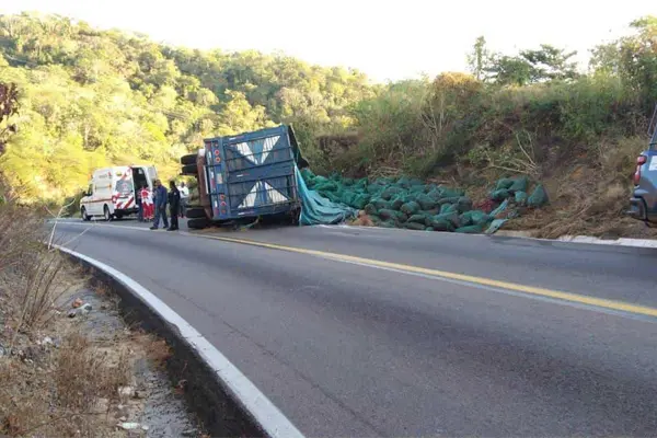 Vuelca camión cargado de chile en la carretera Mazatlán-Durango, en Concordia