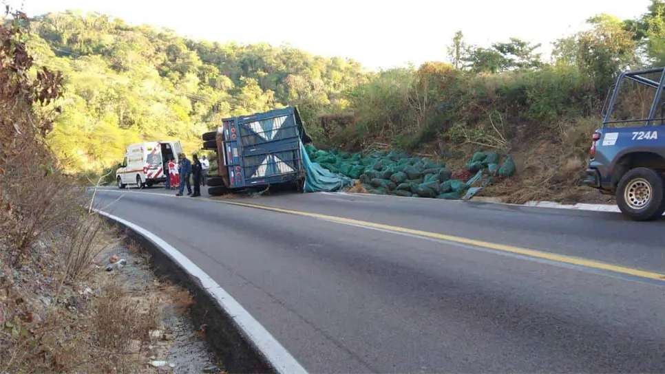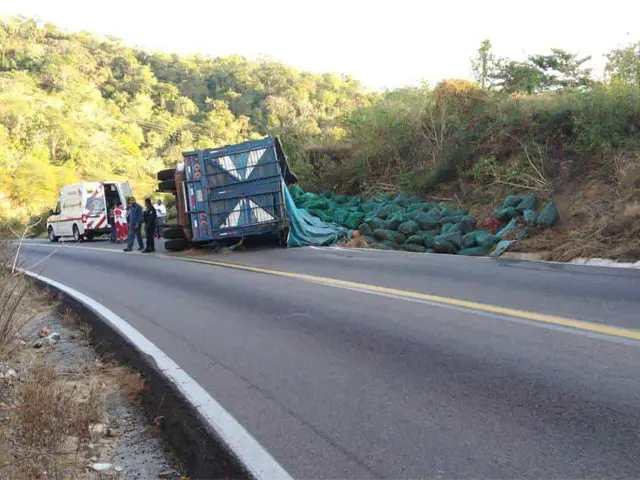 Pero fue al momento de descender por la zona de curvas, a aproximadamente un kilómetro antes de llegar a Malpica, al parecer el peso de la carga ocasionó que el conductor perdiera el control y terminara por volcarse hacia su lado derecho, lo que ocasionó que uno de los carriles terminara obstruido por la carga de chiles y la pesada unidad.