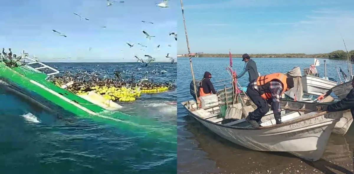 - Después, la embarcación se inclinó y en la primera ola que la golpeó, volcó; minutos después comenzó a hundirse. Mientras esto sucedía, ocho de los pescadores lograron ponerse a salvo y rescataron a uno de ellos, quien sufrió las lesiones de consideración para poderlo llevar a tierra, pero a otro de sus compañeros no lo encontraron.
