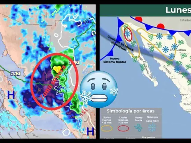 Además, continuarán manteniéndose condiciones para la caída de nieve o aguanieve en sierras de Sonora, Chihuahua, Durango y Sinaloa (sierra norte).