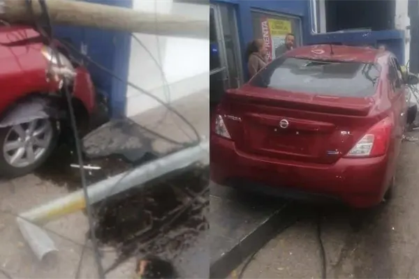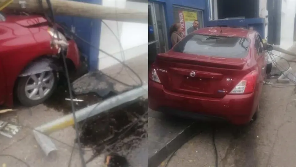 Un conductor que perdió el control por la avenida Álvaro Obregón, en el primer cuadro de la ciudad de Culiacán, se impactó contra un poste y una barda de un local comercial.
