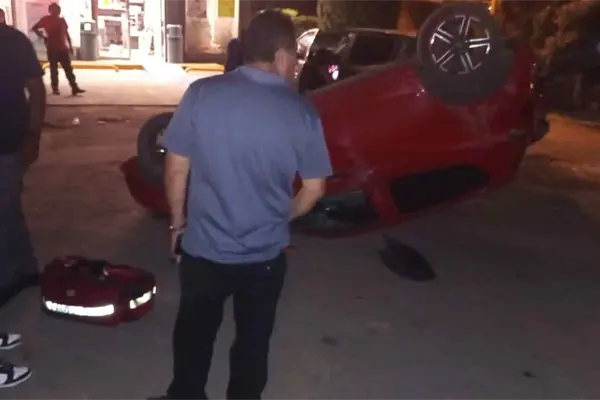 Fue en ese momento que un automóvil Chevrolet Spark tinto lo golpeó en la parte trasera, lo que provocó que la conductora del automóvil, identificada como Paola «A» de 27 años, perdiera el control y volcara.