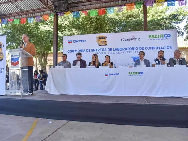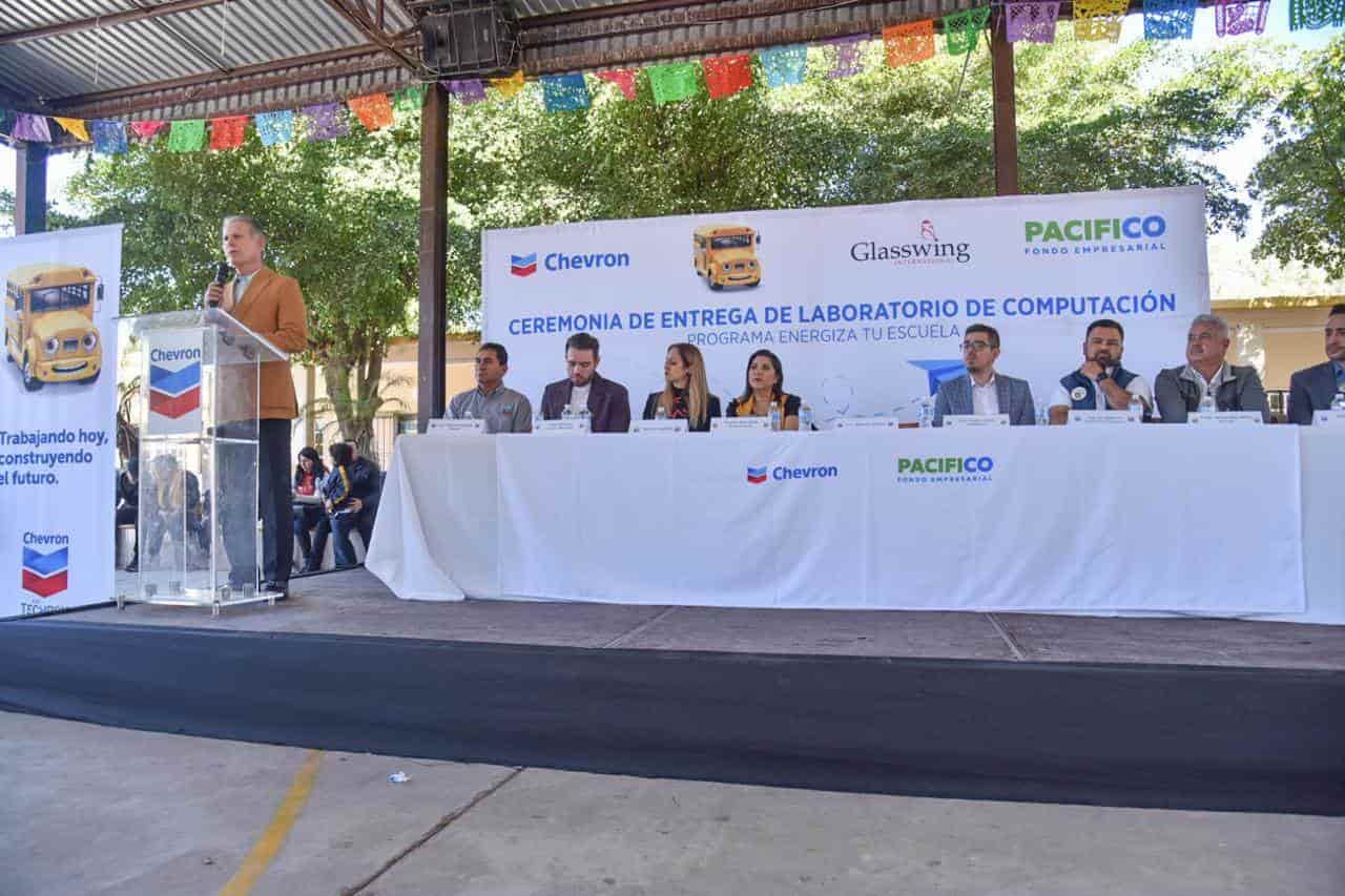 La donación de equipo tecnológico fue por parte del grupo Chevron a las primarias Lázaro Cárdenas y Vicente Guerrero, que benefició a más de 700 estudiantes.