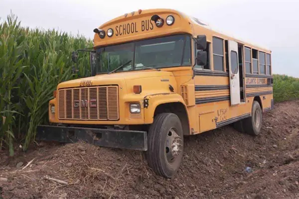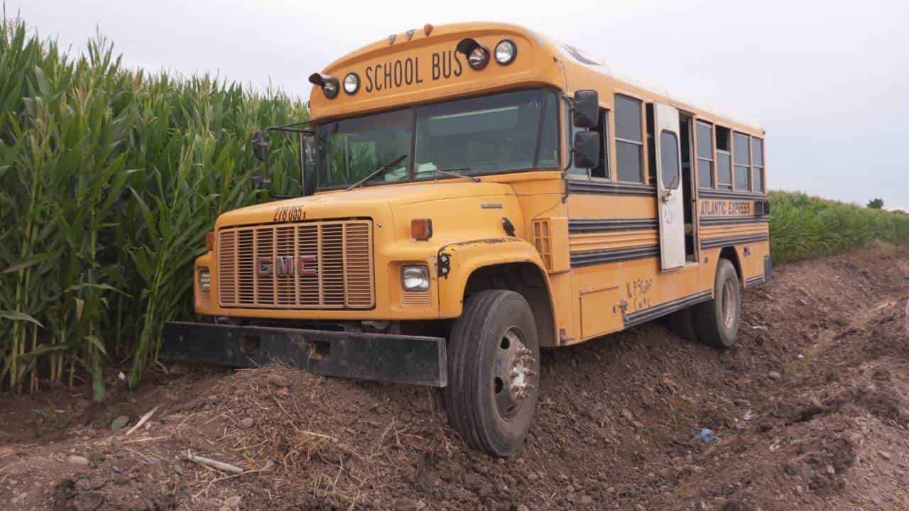 Se trata de un camión ómnibus de color amarillo, de la marca GMC, modelo 1997, de transporte de personal del campo, en el cual al momento del accidente viajaban 23 jornaleros agrícolas.