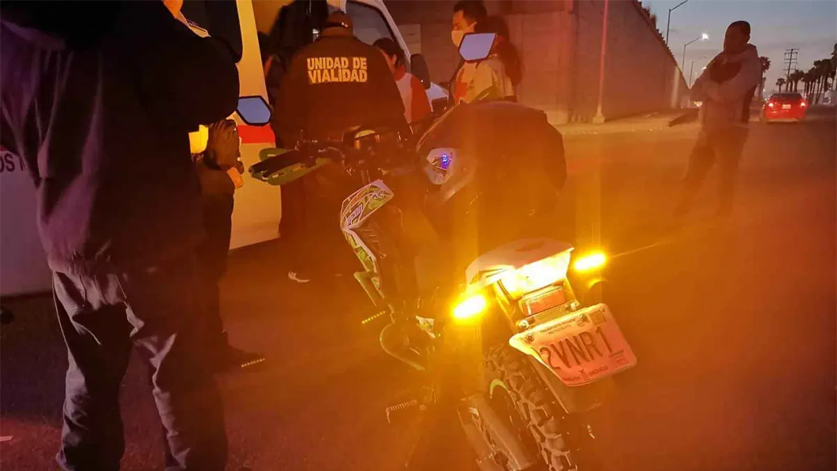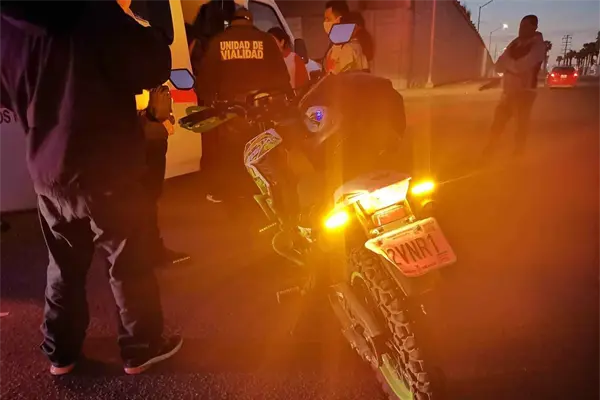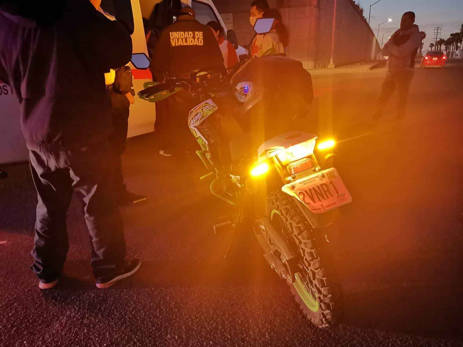 Un accidente ocurrido esta noche entre una camioneta y una motocicleta, a la altura del acceso norte de la ciudad de Los Mochis conocido como el Lienzo Charro, dejó como saldo daños materiales y una pareja con lesiones; la mujer fue la que se llevó la peor parte y fue trasladada a un hospital privado para recibir atención médica.