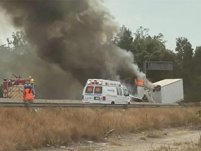 El reporte se realizó minutos después de las 10:20 horas cuando el tráiler era conducido de sur a norte por la carretera de Eldorado a Culiacán, pero al subir al puente, el camión de carga empezó a quemarse.