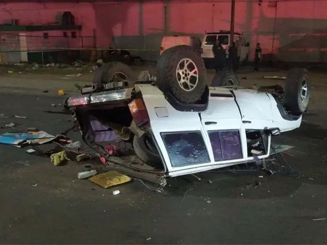 Una de las camionetas quedó volcada sobre la carretera a Sanalona