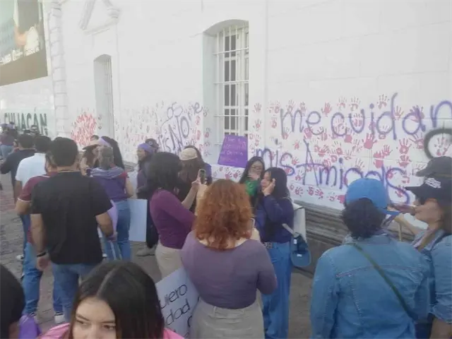 Colectivos feministas bloquearon por algunos minutos la avenida Álvaro Obregón y pintaron con graffiti las paredes del Ayuntamiento de Culiacán, en contra de la violencia contra las mujeres.