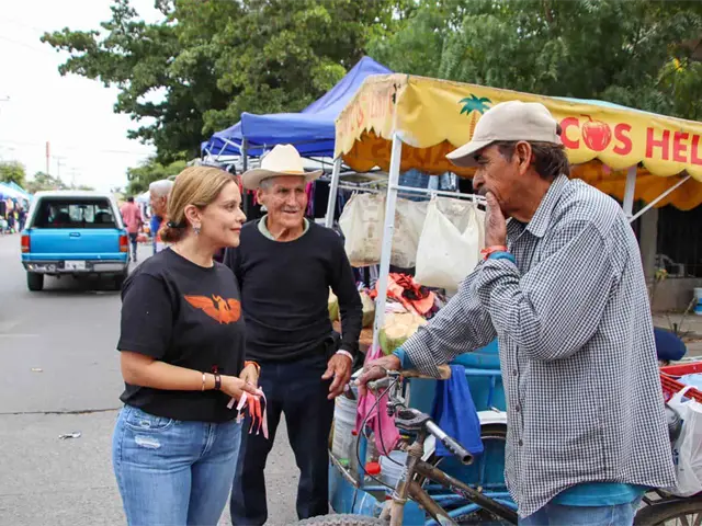 Fernanda Rivera, Candidata al Senado de la República; y Bárbara Fox, Candidata a Diputada Federal por el Distrito 02 con Movimiento Ciudadano (MC) visitaron el tianguis de la Colonia Jaramillo en Ahome para platicar con los comerciantes locales.