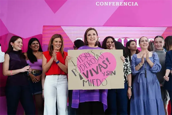 «Cuando sea Presidenta, su servidora, le va a abrir las puertas de Palacio Nacional a todas las mujeres y al feminismo. Escuchen bien, el próximo año, las mujeres mexicanas van a tener una Presidenta que no les va a poner vallas en Palacio Nacional. Van a tener una Presidenta que las escuchará y acompañará. Las demandas de las mujeres serán las causas de mi gobierno», comentó.