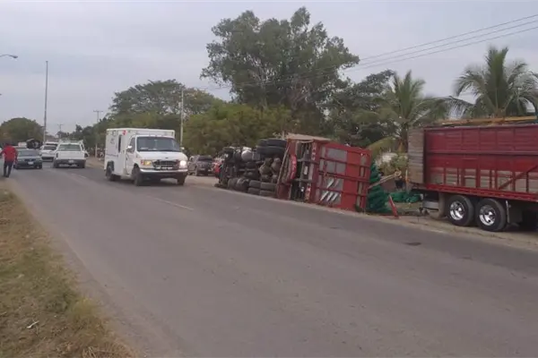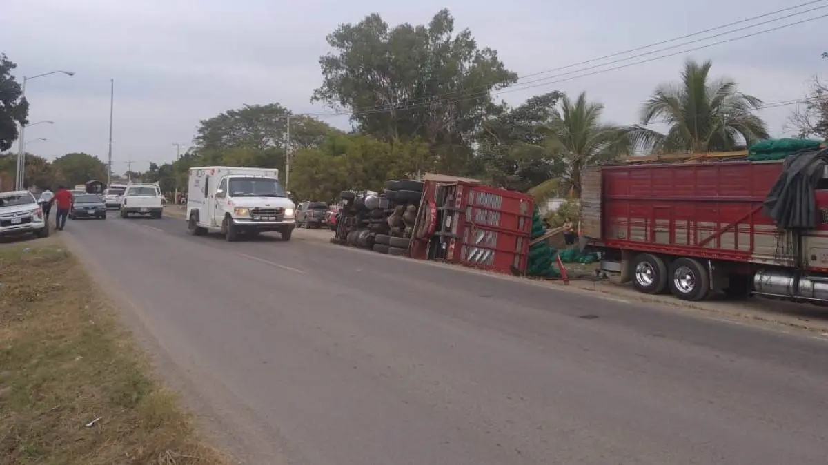 Camión cargado con chiles vuelca en la entrada de Villa Unión