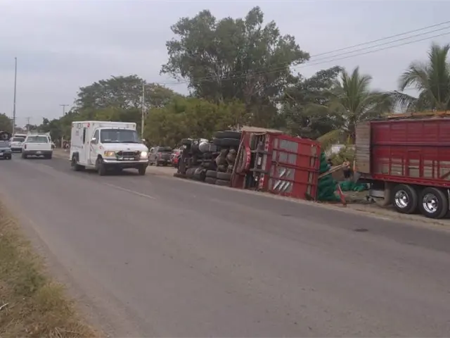 De acuerdo con la información recabada en el lugar, el accidente ocurrió frente al estadio de beisbol de la sindicatura de Villa Unión, cuando el conductor decidió orillar su vehículo, lo que aparentemente provocó que la carga se desestabilizara y terminara por volcar.