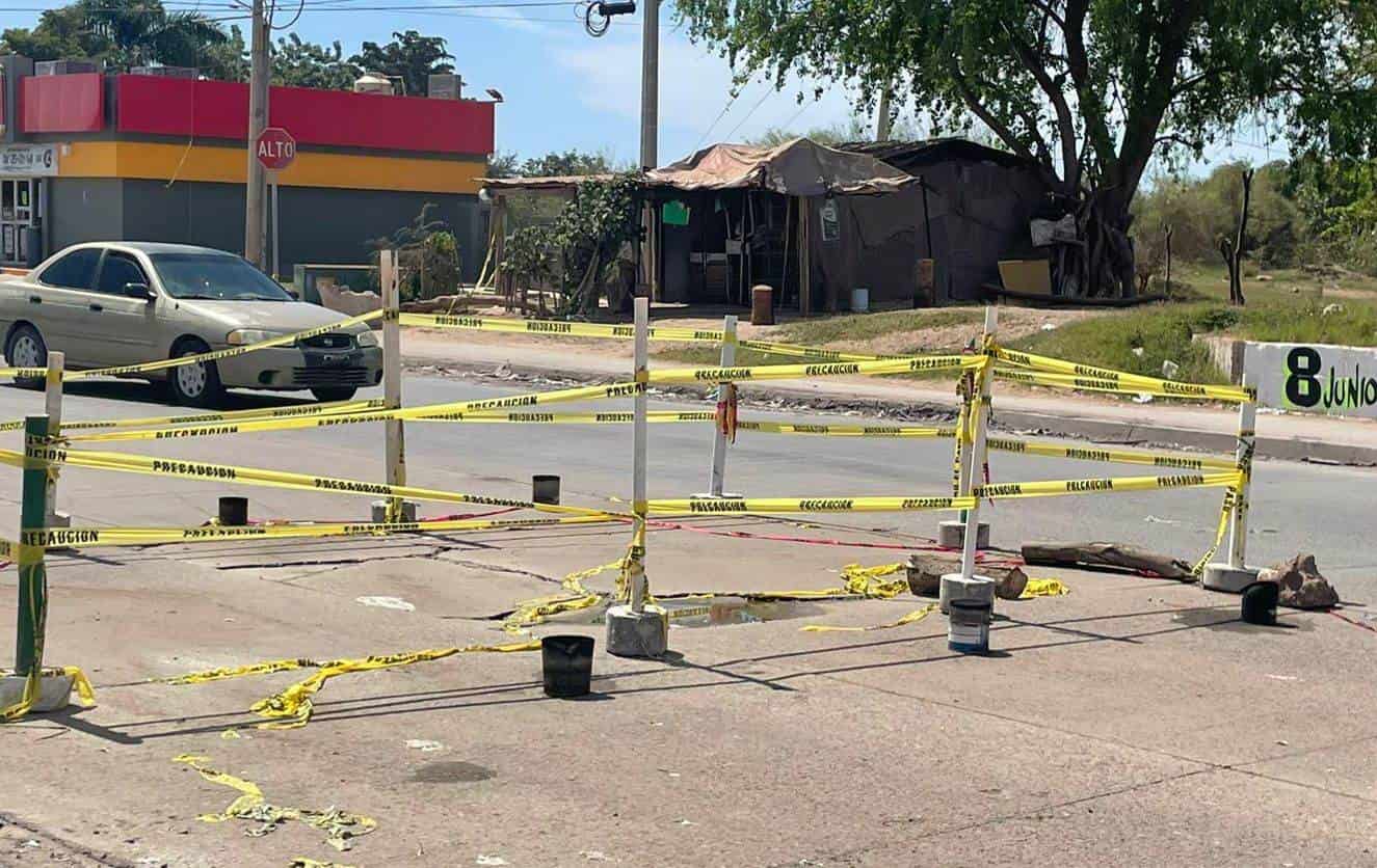 Ante dicha situación, el Ayuntamiento de Ahome, a través de la Coordinación de Protección Civil en Ahome, acordonaron la zona para evitar que los vehículos, sobre todo los camiones urbanos y unidades pesadas, circulen e incrementen las fracturas del pavimento.