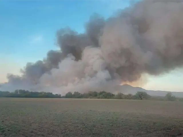 Fuerte incendio arrasa con mil 500 pacas de pastura en Angostura
