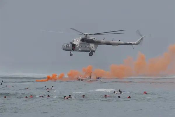 En el mar, la Policía Acuática y ENSAR de la Secretaría de Marina-Armada de México, desplegaron sus unidades, incluyendo un helicóptero, para llevar a cabo labores de rescate y salvamento.