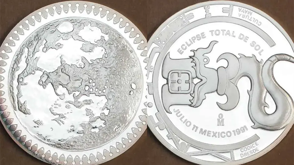 La moneda en cuestión fue sacada en Mexico para celebrar el eclipse solar que ocurrió el 11 de julio de 1991, por lo que si estás interesado en saber cuanto cuesta, debes de sacar tus ahorros, pues no es nada barata.
