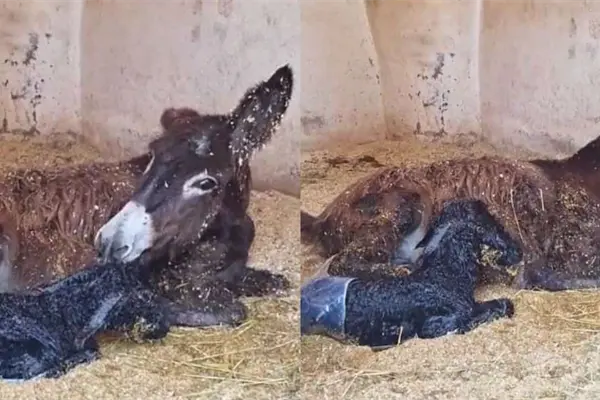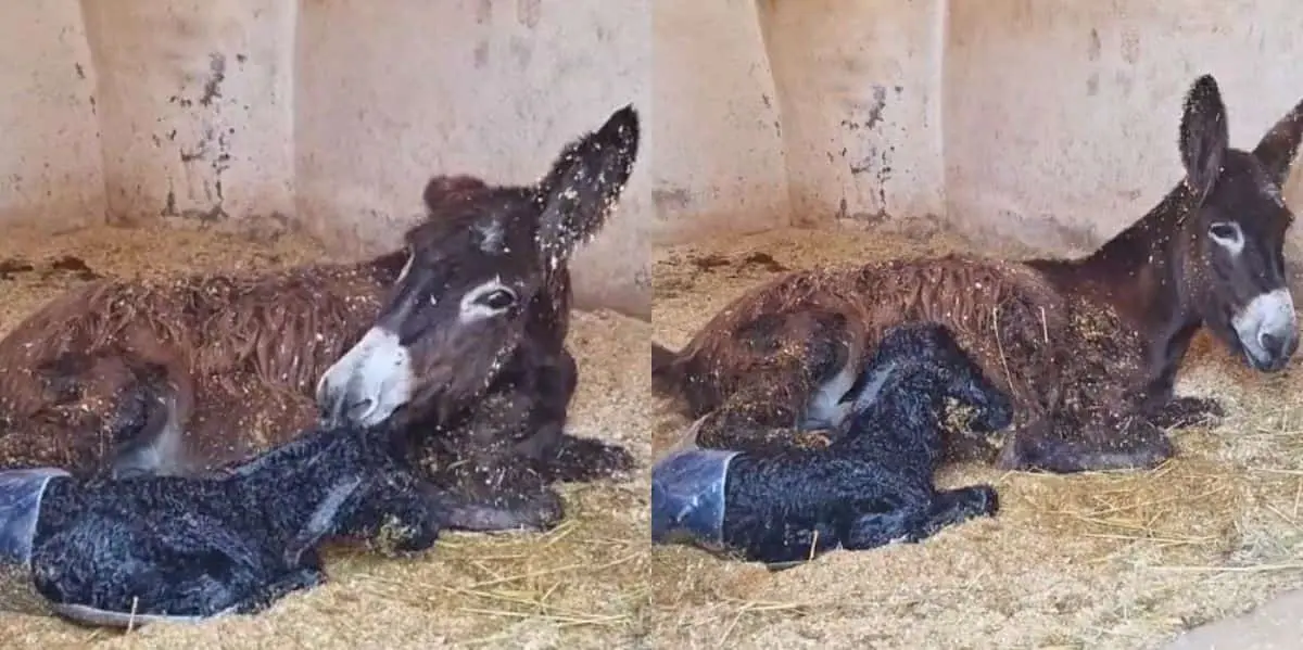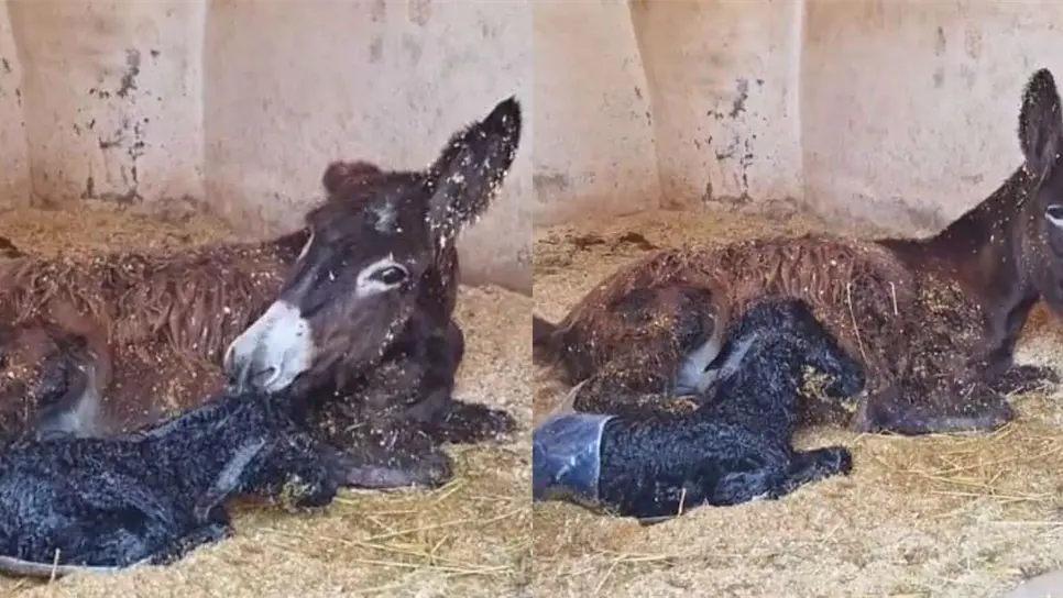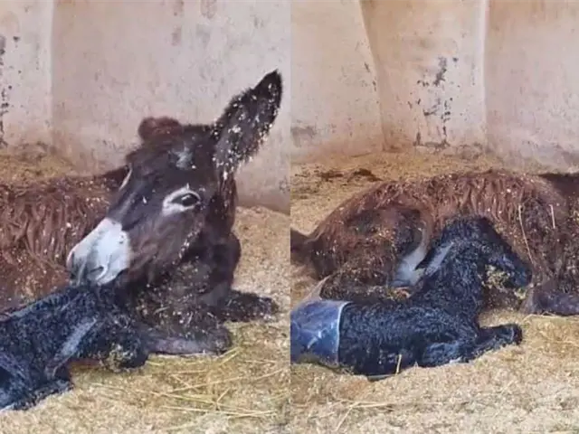 A través de la cuenta de Instagram @cuacolandia, se compartió un emotivo video del momento en que el burrito nació sano y salvo. En las imágenes, se observa al pequeño acostado sobre paja, aún húmedo del parto, mientras su madre lo limpia amorosamente con su lengua.
