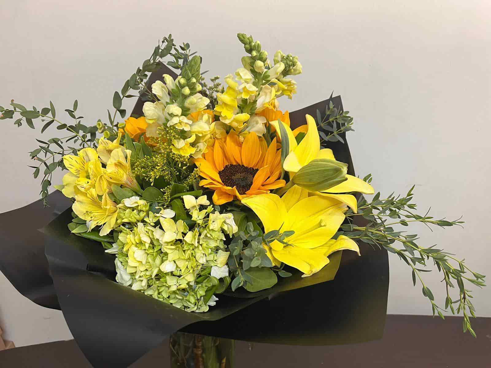 Rosas amarillas, gladiolas, gerberas, tulipanes, orquídeas, margaritas, girasoles, petunias, lirios, narcisas, clavel, mimosa, zinnia, peonias, boca de dragón y más.