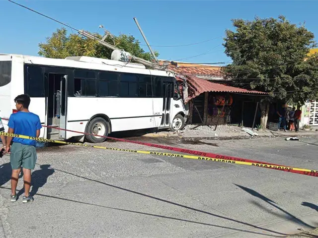 Un camión urbano se impactó de lleno contra un comercio en la ciudad de Mazatlán, al sur de Sinaloa, durante la tarde de este jueves, y en el mismo accidente dañó un poste de la Comisión Federal de Electricidad (CFE).