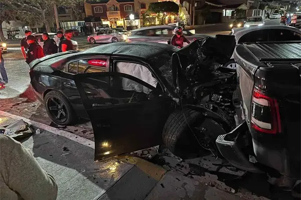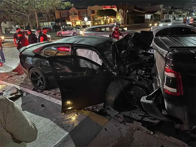 De acuerdo con la información recabada en el lugar del accidente, un automóvil Dodge negro tipo Charger, que circulaba a toda velocidad por la avenida Lomas, su conductor por causas desconocidas perdió el control, lo que provocó que terminara por impactarse con una camioneta Mazda blanca en su costado izquierdo.