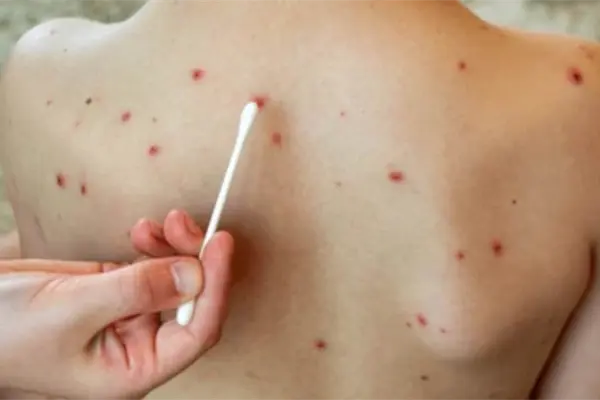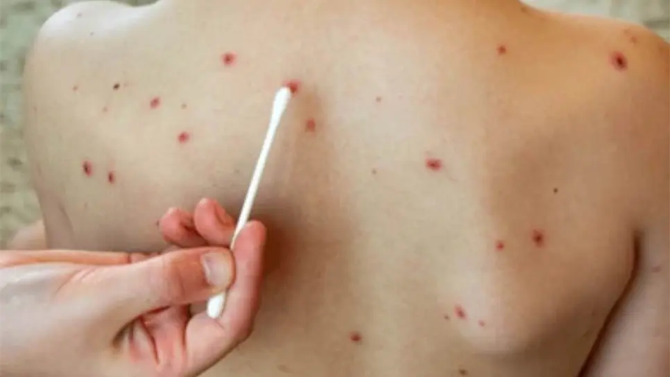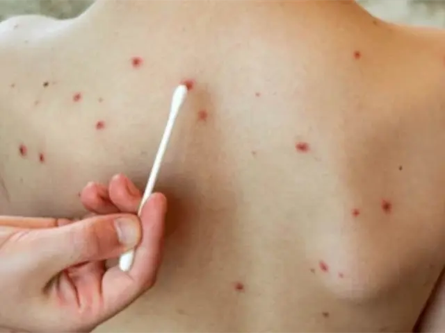 Además de ronchas en el cuerpo, los síntomas incluyen fiebre, manchas rojizas en la piel, conjuntivitis, catarro, tos y manchas blancas en la boca.