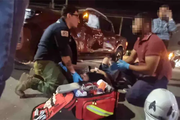 Los paramédicos del grupo Gerum lo estabilizaron para después colocarlo a una ambulancia que lo traslado al hospital del Seguro Social.