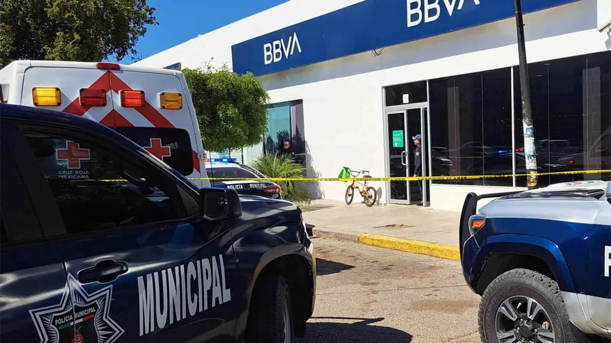El intento de asalto se registró la tarde de lunes, 15 de abril, en la sucursal del BBVA, ubicada en el cruce del bulevar 16 de Septiembre y la calle Constitución, en el centro de la ciudad de Guasave.