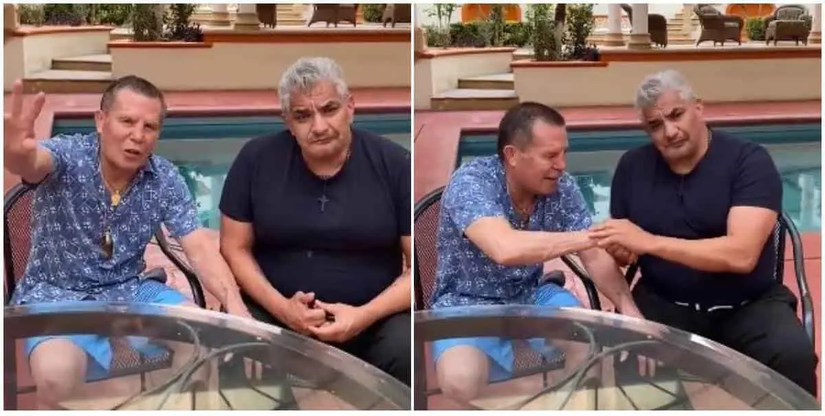 En el video se observa que ambos están sentados en una especie de patio con alberca y bastante espacioso, dentro de la Clínica Baja del Sol, propiedad del expugilista.