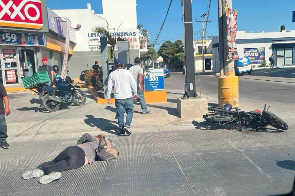 El choque dejó como saldo una mujer lesionada, tendida por unos minutos en el suelo, pero que tras ser valorada por paramédicos de Cruz Roja, se verificó que no contaba con lesiones de gravedad.