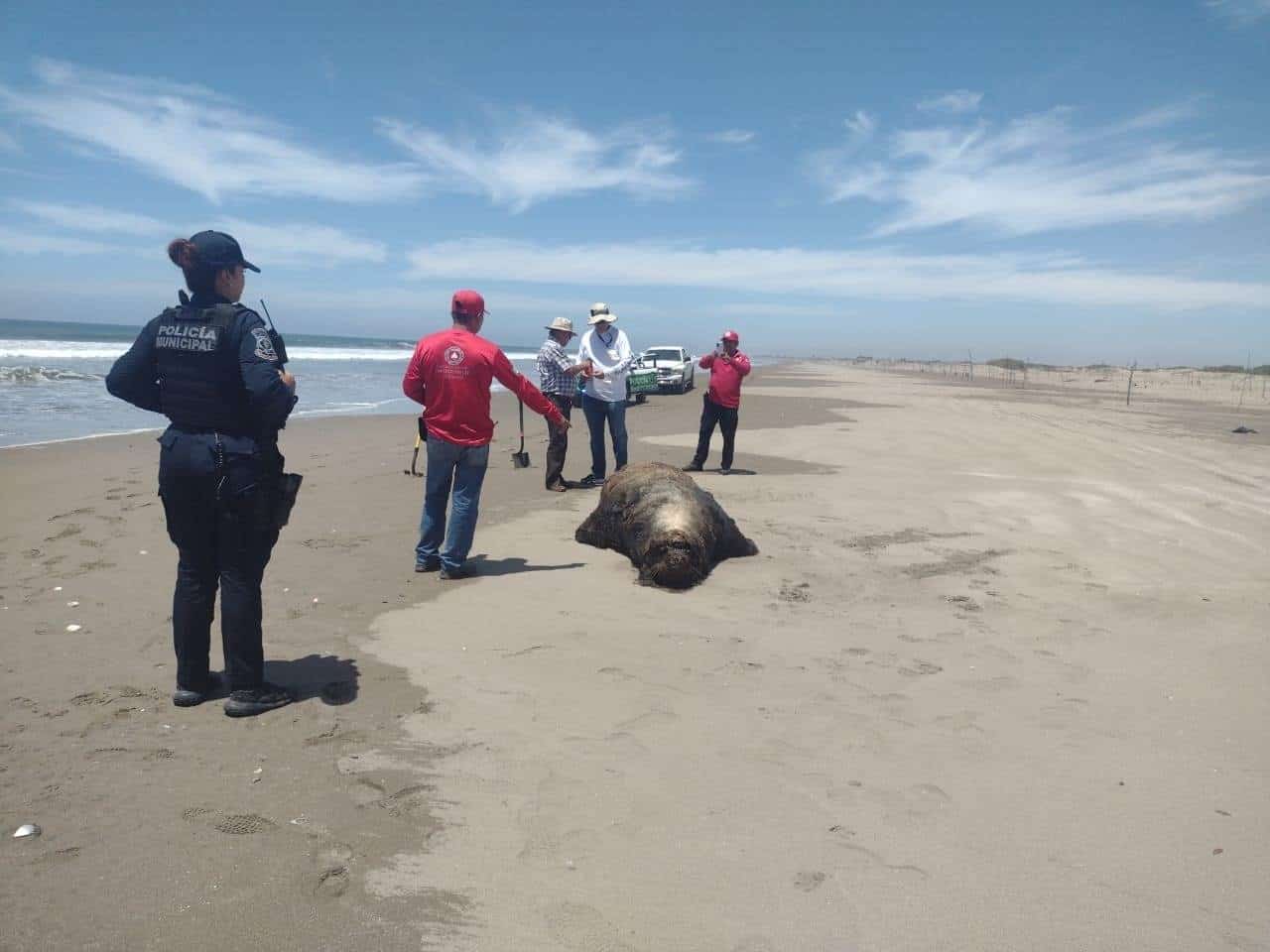 Autoridades municipales de Guasave fueron alertados esta mañana del hallazgo de dos lobos marinos de California y una tortuga marina sin vida en la playa de Bellavista, a donde se movilizaron y después de confirmar que no tenían vida, los sepultaron.
