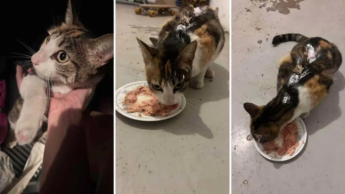 «Hola amigos, quiero decirles que el día de ayer rescate a un gatito en la sucursal Cano (restaurante), el gerente que trabaja ahí le tiró agua caliente en su lomito para que se fuera del lugar y lo lastimo muy feo, le dejó todo su lomito abierto»