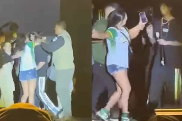 Un usuario en redes sociales se encargó de grabar y publicar el momento en el que, mientras el sonorense cantaba cómodamente una canción, una fan logró evadir a los guardias de seguridad para acercarse y abrazar al intérprete de «Más Altas que Bajadas», provocando la supuesta agresión por parte del cantante.