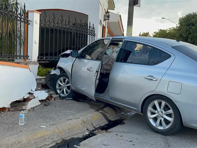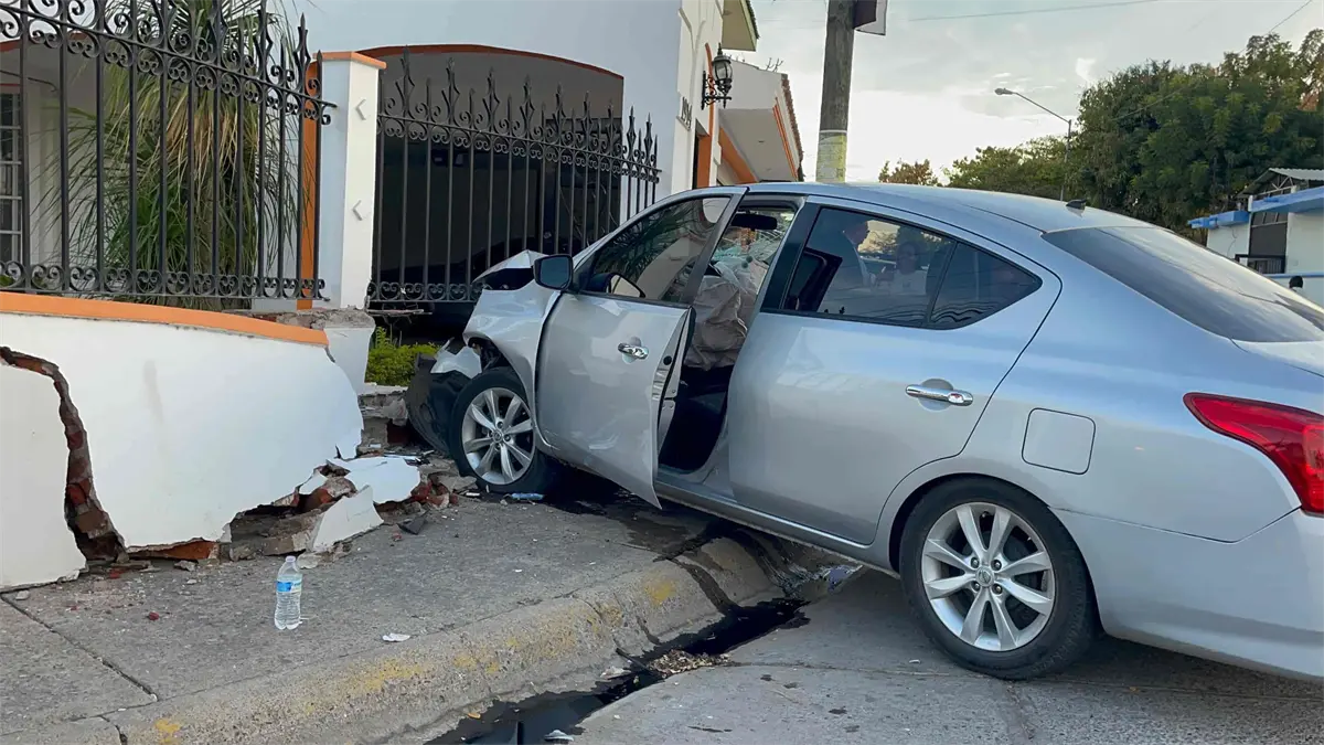 La mujer de edad adulta que conducía un vehículo Nissan Versa color gris terminó impactada contra la barda del jardín de una casa ubicada en la esquina con la calle El Fuerte y Mazatlán.