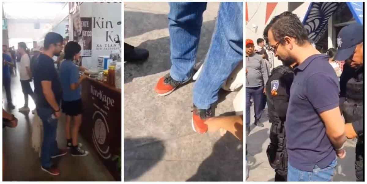 Se trata de Miguel «E», de 40 años de edad, quien fue captado en video el pasado primero de mayo en las inmediaciones de la feria cuando se acercaba las mujeres que usaban falda y supuestamente las grababa con una cámara que llevaba oculta en uno de sus zapatos.