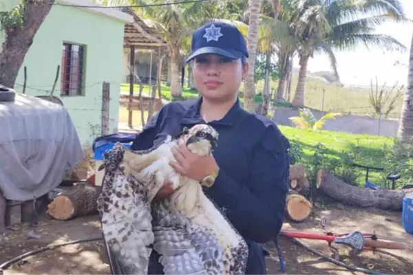 Jorge Leal, el residente que notó al ave, observó al águila luchando y descubrió que estaba enredada en un mecate, por lo que utilizó una escalera para alcanzar y liberar al animal, para luego resguardarlo y notificar a las autoridades competentes.