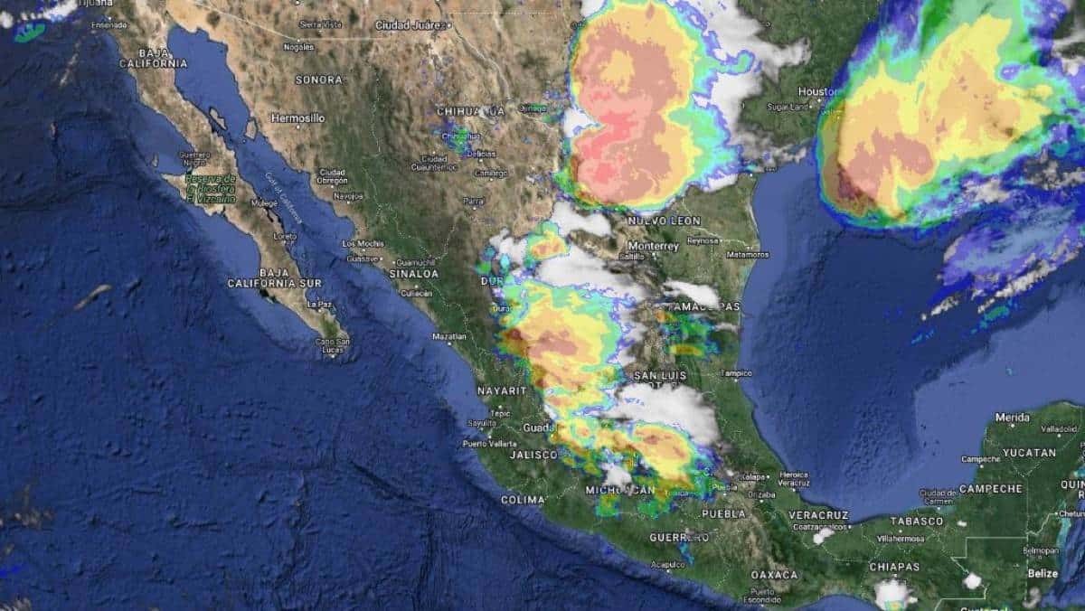 Por otra parte, canales de baja presión en el norte, centro y sureste mexicano, en combinación con inestabilidad en niveles altos de la atmosfera y el ingreso de humedad del Océano Pacífico y Golfo de México, producirán chubascos y lluvias puntuales fuertes acompañadas de descargas eléctricas y posibles granizadas en estados del norte, occidente, centro y sureste del país, así como rachas fuertes de viento y posibilidad de formación de torbellinos en zonas de Chihuahua, Durango, Zacatecas, Aguascalientes, Jalisco, Guanajuato, Querétaro, Hidalgo, Estado de México y Ciudad de México.