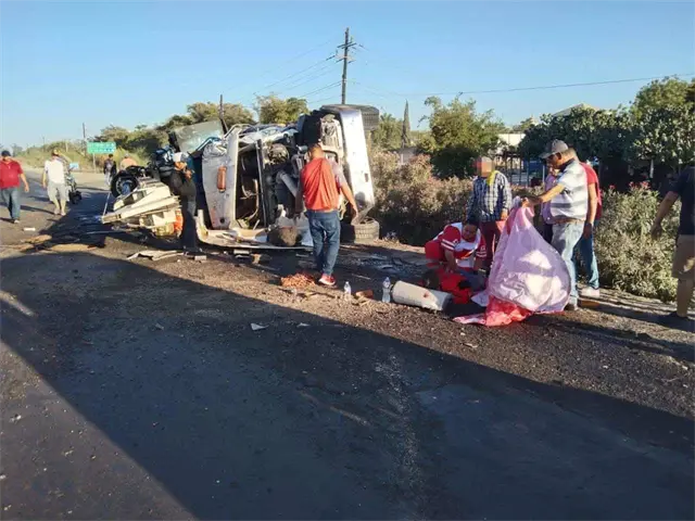 Un conductor de tráiler terminó con múltiples lesiones luego de chocar contra una vagoneta y volcar sobre la carretera Internacional México 15, a la altura de la sindicatura de Adolfo Ruiz Cortines, en Guasave.