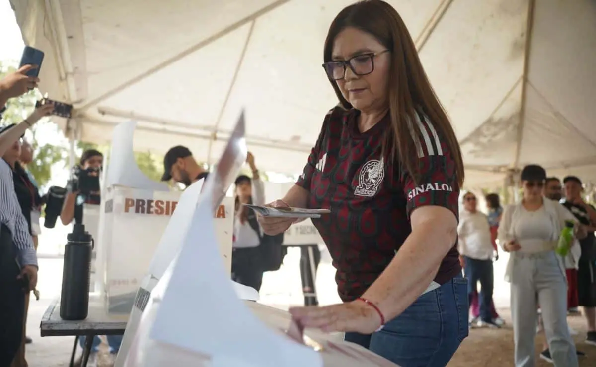 La candidata al Senado por Morena, Imelda Castro, ya ejerció su voto al mismo tiempo que su compañero de fórmula, Enrique Inzunza Cazarez.