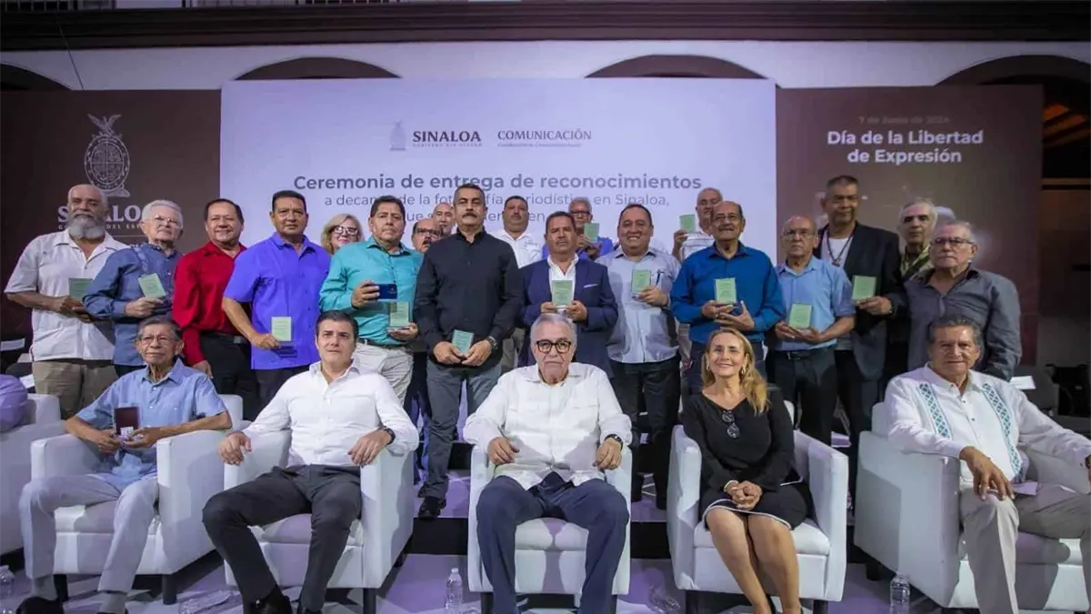 Testigos de innumerables acontecimientos de la vida cotidiana de Sinaloa, los fotoperiodistas convierten su profesión en un estilo de vida y su trabajo se convierte en prueba de los retos diarios que enfrentan, por lo que en una muestra de aprecio a esta invaluable labor, el Gobernador Rubén Rocha Moya encabezó este viernes la ceremonia de entrega de reconocimientos a 23 decanos de la fotografía periodística de nuestro estado, organizada por la Coordinación de Comunicación Social del Gobierno del Estado, que dirige Adriana Margarita Ochoa del Toro.