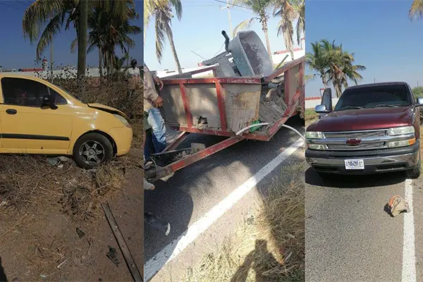 - Según la Dirección de Movilidad Sustentable, el conductor, identificado como Filiberto «N» residente de la comunidad de San Antonio, conducía un Pontiac Matiz, color amarillo, con placas de circulación de Sinaloa, cuando colisionó con un remolque cargado de escombros.