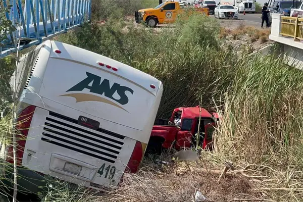 La camioneta, que era tripulada por dos personas, sufrió la embestida del autobús, con el impacto se cobró la vida de ambos los ocupantes.