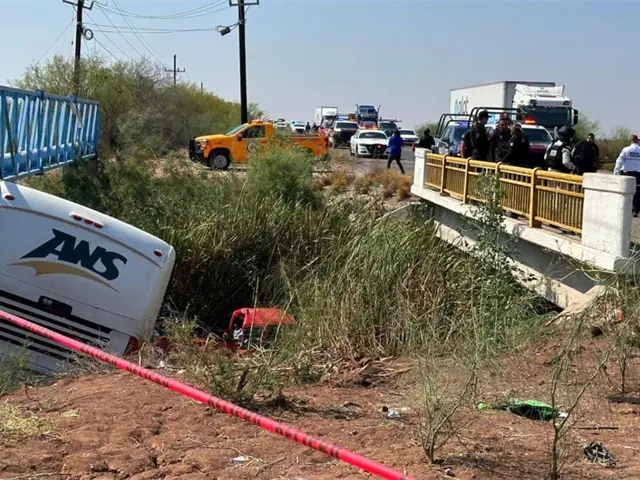 El accidente ocurrió sobre la carretera federal México 15, en las inmediaciones del ejido Chihuahuita y Poblado 5, en la sindicatura del Valle de El Carrizo, municipio de Ahome, dónde una pareja perdió la vida y 9 personas resultaron lesionadas.