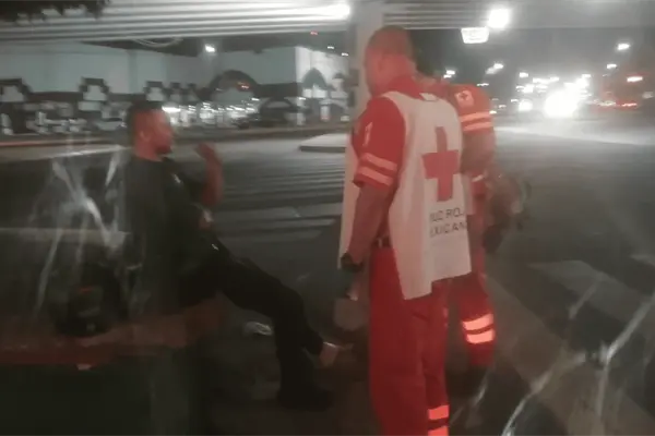 Paramédicos llegaron minutos después del reporte y le brindaron los primeros auxilios al elemento de la Policía Federal, quien sufrió golpes en el cuerpo y una herida de varios centímetros en el pie izquierdo.