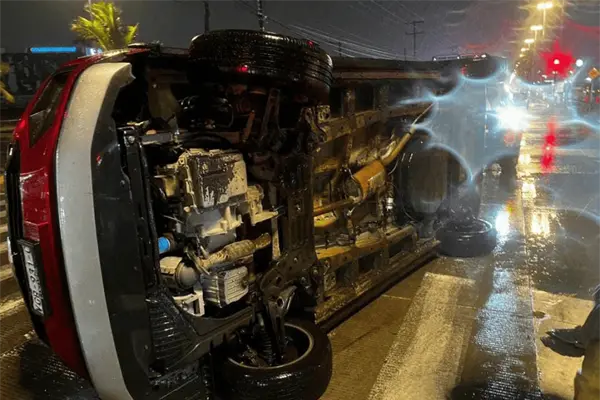 El pavimento mojado y una mala maniobra a la hora de conducir, dejaron una camioneta familiar volcada sobre la avenida Rafael Buelna en el puerto de Mazatlán durante la noche lluviosa de jueves.