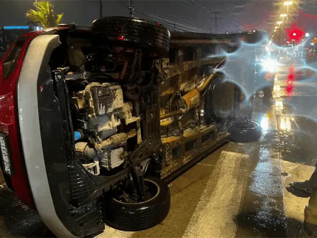 La camioneta de modelo reciente en color rojo, tuvo que ser volteada a su posición normal por varias personas que acudieron al auxilio del conductor, el cual, según un video circulado, salió por la puerta aún estando volcado el vehículo.